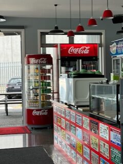 The Cafe is retro-themed with an automobile twist, and the food is a Kiwi influenced American menu, featuring Brunches, Lunches, Pizzas, Burgers etc. There is plenty of parking and Cafe seating too.